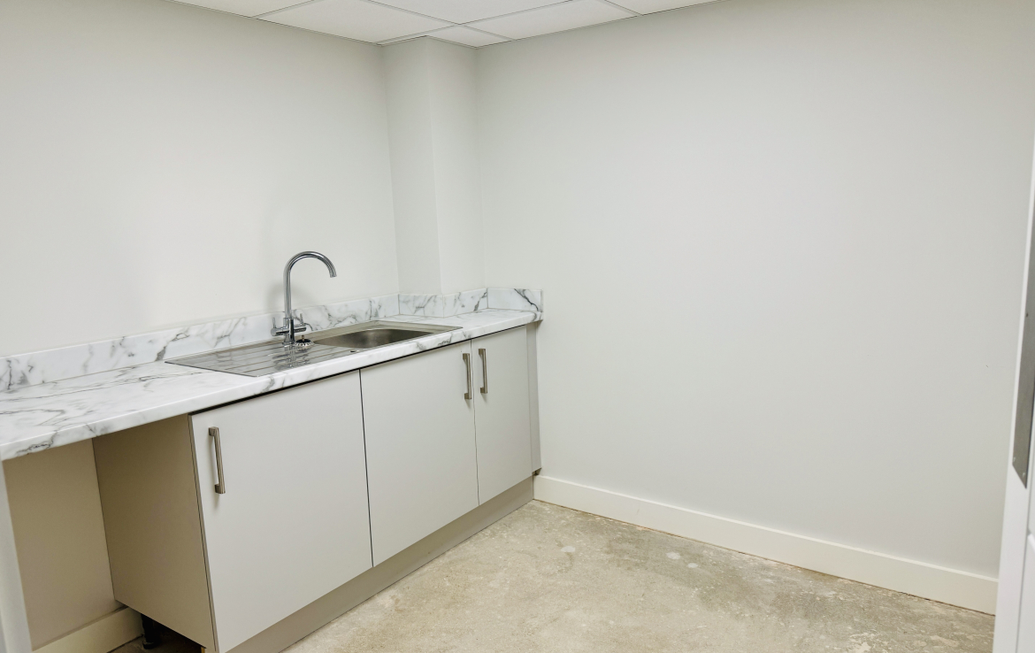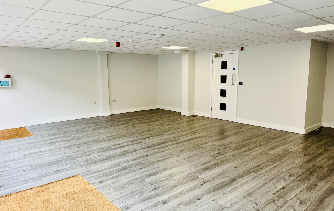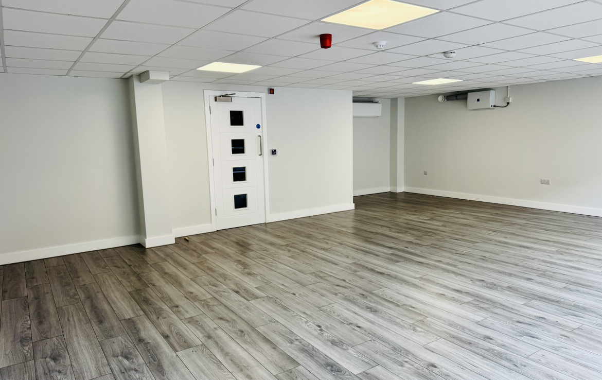 The unit is fitted to a high standard and includes new laminate flooring, suspended ceilings with integrated LED lighting, air conditioning, and mechanical extract.